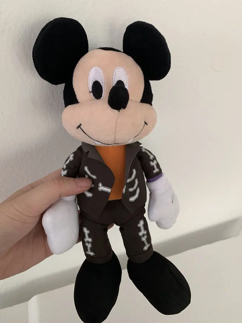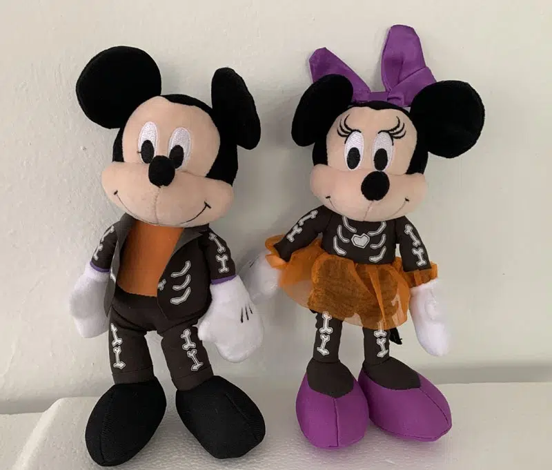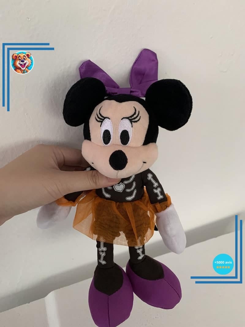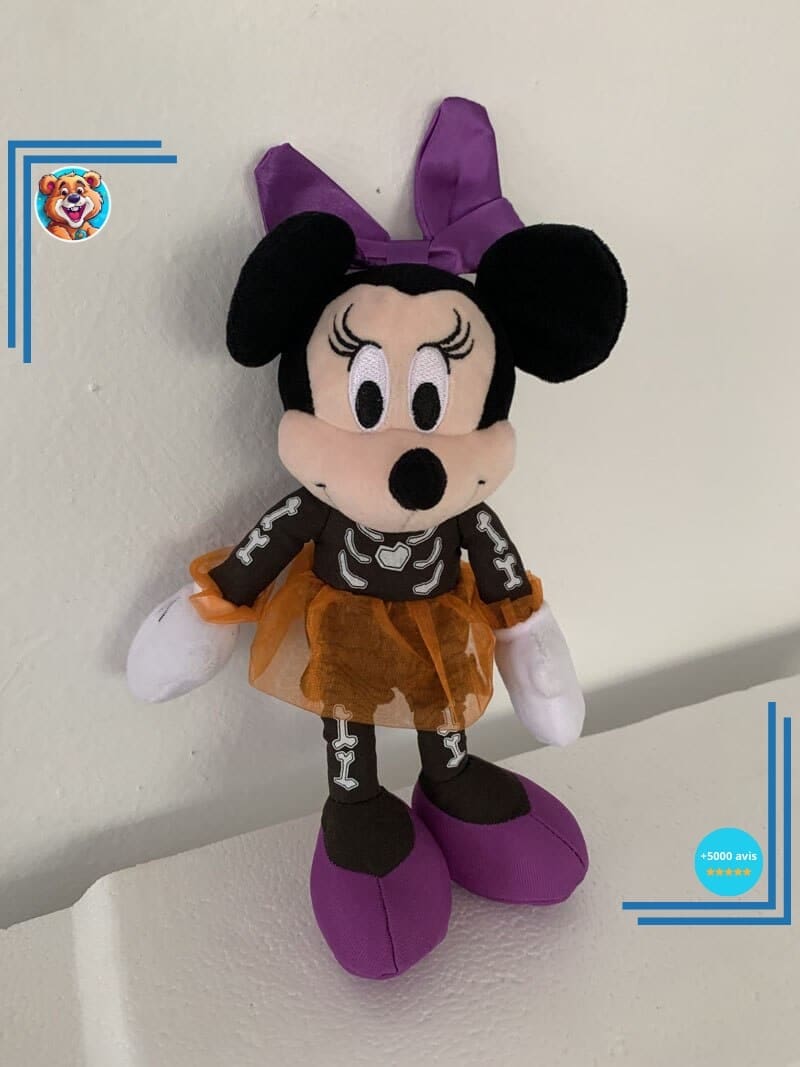 Achetez le lot de deux peluches Minnie et Mickey pour célébrer Halloween. Nos héros Disney se déguisent en squelette pour l’occasion. Ces jouets de 31 cm raviront les enfants comme les adultes grâce à leur look sérieux. Ces peluches sont en tissu résistant et souple, avec une finition de qualité. Les oreilles, les yeux et le nez sont en tissu noir, avec des traits du visage brodés à la main et un sourire malicieux. Enfin, les bras et les jambes de Mickey et Minnie sont articulés, pour s’asseoir ou se tenir debout. Livrées avec un certificat d’authenticité.