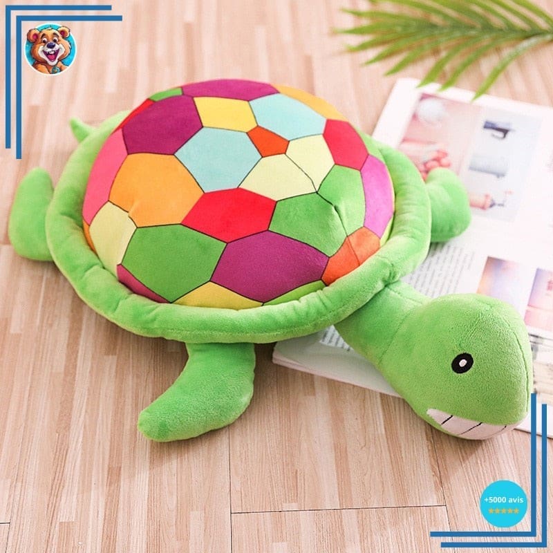Caractéristiques de la peluche tortue multicolore