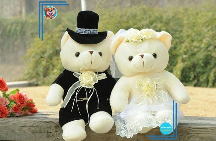 Offrez un cadeau exceptionnel pour la Saint-Valentin à l’être cher qui partage votre vie ! Ce doux couple d’ours en peluche est l’idéal pour une demande en mariage ! Son tissu doux, son visage charmant et sa superbe fourrure sont parfaits pour ravir votre amour. Un joli nœud papillon rose complète le look vintage et élégant de ces petites bêtes en peluche, à coup sûr elles mettront du bonheur dans le cœur de votre partenaire !