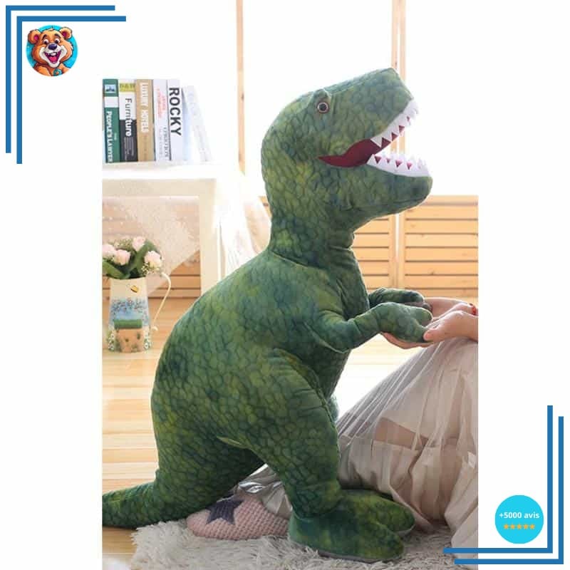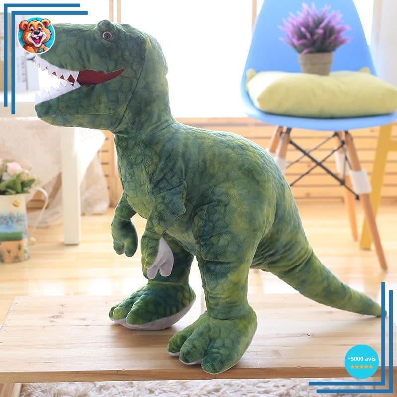 Offrez-vous un magnifique dinosaure en peluche vert unique et époustouflant ! Sa férocité insuffle la crainte aux autres dinosaures qui n’osent pas le provoquer. Faites-vous un ami de cet imposant T-Rex et créez de mémorables aventures avec cette remarquable peluche !